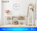 - ๐ COMPLETELY SILENT, WONโT KEEP ANYONE UP! Our telling time teaching clock is a quiet clock with a stylish continuous sweep movement making it great room & wall decor for kids rooms, nursery or homeschool classrooms