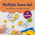 - 🕕 INCLUDES 4 FUN FILLED GAMES! Small Dry Erase clock (3.5 inch): where kids can practice setting and telling the time repeatedly. Dice Game:roll the dice for a fun and unpredicable way to practice telling the time. Puzzle Matching Game: Enhances memory and cognetive skills. Challenge Cards: With three levels of difficulty, these cards provide a range of questions and challenges to suit different learning stages and keep kids progressing.