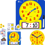 53 Piece Telling Time Activity Set: 🕕 INCLUDES 4 FUN FILLED GAMES! Small Dry Erase clock: where kids can practice setting and telling the time repeatedly. Dice Game:roll the dice for a fun and unpredicable way to practice telling the time. Puzzle Matching Game: Enhances memory and cognetive skills. Challenge Cards: With three levels of difficulty, these cards provide a range of questions and challenges to suit different learning stages and keep kids progressing